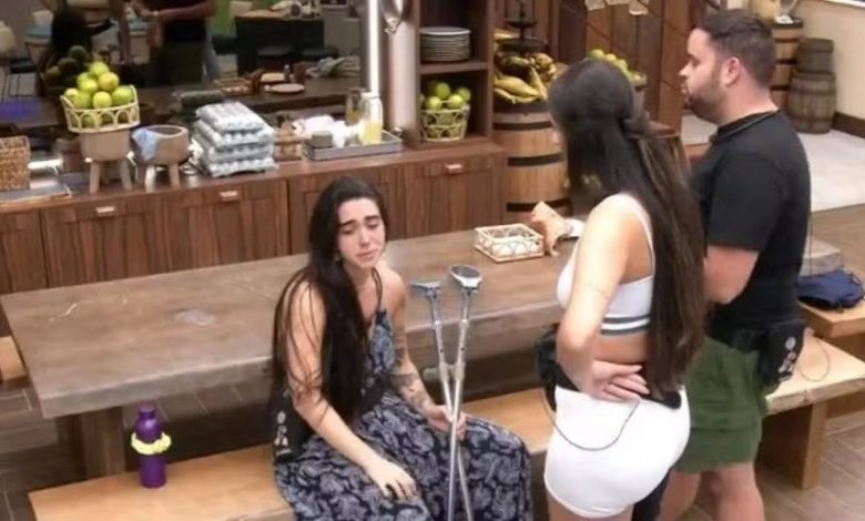 Giovanna com muleta – Foto: Globoplay Lesão inesperada no auge da diversão Durante a animada festa desta quarta-feira (10) no…